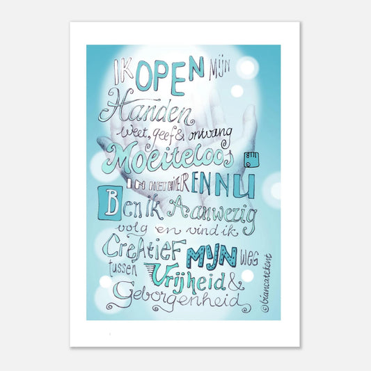 Art Print: Blauwe Hand affirmatie